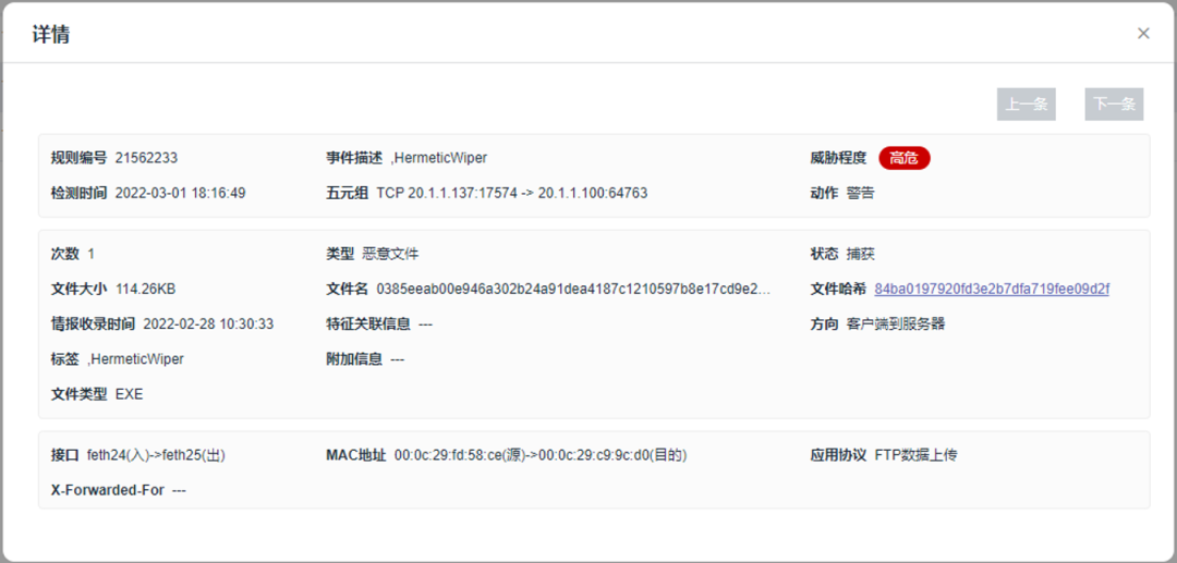 Õë¶ÔHermeticWiper¶ñÒâÈí¼þ£¬£¬£¬×¯ÏÐÓÎÏ·¹ýÂËÍø¹Ø¼ì²â´¦Öóͷ£·ÖΪÈý²½£¬£¬£¬¼´¿ÉÌṩһÁ¬ÐÔ²»ÖÐÖ¹µÄ²¡¶¾¼ì²â´¦Öóͷ£Ð§ÀÍ£¬£¬£¬²¢¸¨ÒÔʵʱÌáÐѸ澯¡¢²¡¶¾±¬·¢±¨¾¯¡¢ÏêϸµÄÈÕÖ¾¡¢¿ÉÊÓ»¯±¨±í¡£¡£¡£¡£¡£