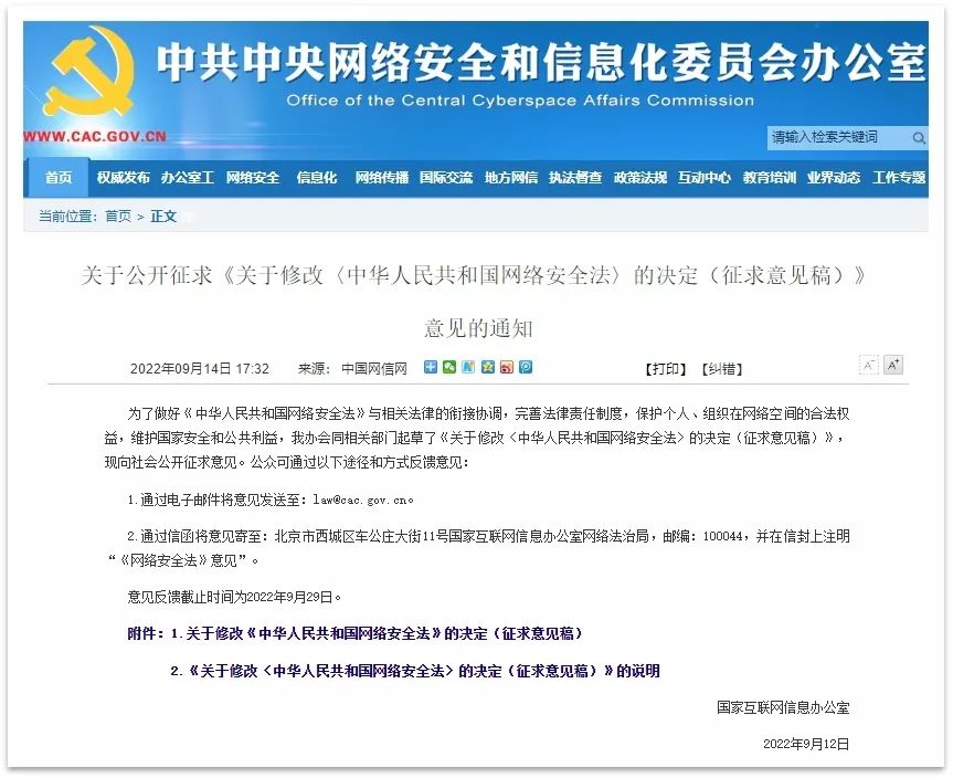 ¶àÄêÀ´£¬£¬£¬£¬£¬ÎÒ¹úÊý¾ÝÇå¾²¡¢Ð¡ÎÒ˽¼ÒÐÅÏ¢±£»£»£»£»¤¡¢Òªº¦ÐÅÏ¢»ù´¡ÉèÊ©±£»£»£»£»¤¡¢Êý¾Ý³ö¾³µÈÍøÂçÇå¾²Ïà¹Ø¹æÔòÖÆ¶ÈÏà¼Ì¹«²¼ÊµÑé²¢Ò»Ö±ÍêÉÆ¡£¡£¡£¡£ÎªË³Ó¦ÐÂÐÎÊÆ£¬£¬£¬£¬£¬9ÔÂ14ÈÕ£¬£¬£¬£¬£¬¹ú¼Ò»¥ÁªÍøÐÅÏ¢°ì¹«ÊÒÐû²¼¹ØÓÚ¹ûÕæÕ÷Çó¡¶¹ØÓÚÐ޸ġ´ÖлªÈËÃñ¹²ºÍ¹úÍøÂçÇå¾²·¨¡µµÄ¾öÒ飨Õ÷ÇóÒâ¼û¸å£©¡·Òâ¼ûµÄ֪ͨ£¨Ï³ơ°Í¨Öª¡±£©£¬£¬£¬£¬£¬Ö¼ÔÚͨ¹ýÏòÉç»á¹ûÕæÕ÷ÇóÒâ¼û£¬£¬£¬£¬£¬×öºÃ¡¶ÖлªÈËÃñ¹²ºÍ¹úÍøÂçÇå¾²·¨¡·£¨Ï³ơ¶ÍøÂçÇå¾²·¨¡·£©ÓëÏà¹ØÖ´·¨µÄÏνÓе÷£¬£¬£¬£¬£¬ÍêÉÆÏà¹ØÖ´·¨Öƶȣ¬£¬£¬£¬£¬½øÒ»²½°ü¹ÜÍøÂçÇå¾²¡£¡£¡£¡£