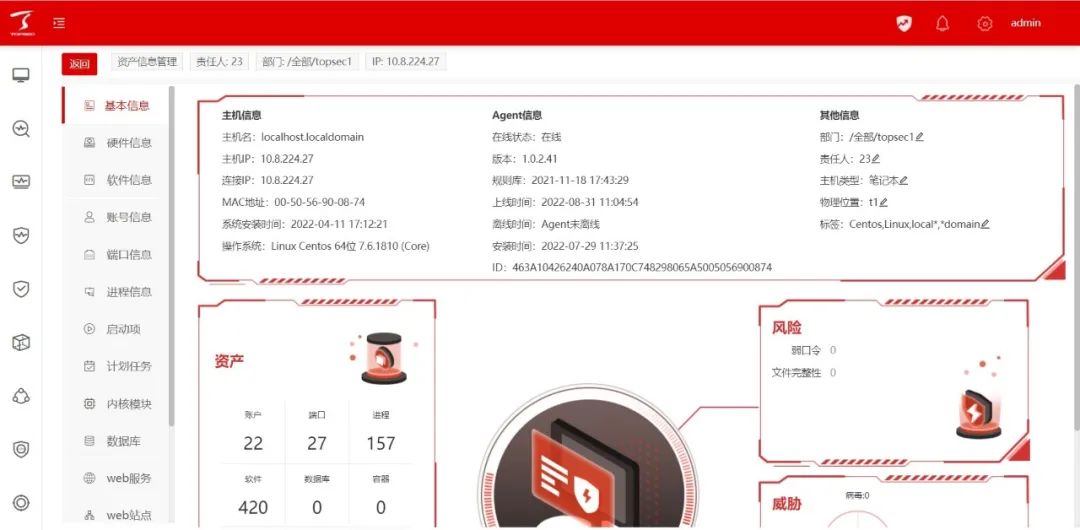 Ê×ÏÈ£¬£¬£¬ÎÒͨ¹ý×ʲúÖÎÀí¹¦Ð§£¬£¬£¬×ÐϸÊáÀí³öÖ÷»úÅÓÔÓµÄÊý¾Ý×ʲú£¬£¬£¬Õ¹Ê¾Ö÷»úÀú³Ì¡¢¶Ë¿Ú¡¢ÍýÏëʹÃüµÈÖØµã×ʲúÐÅÏ¢£¬£¬£¬Àû±ãÇå¾²Ö°Ô±¹¹½¨Ö÷»ú²à×ʲúÖ¸ÎÆ¿â£»£»£»£»£»