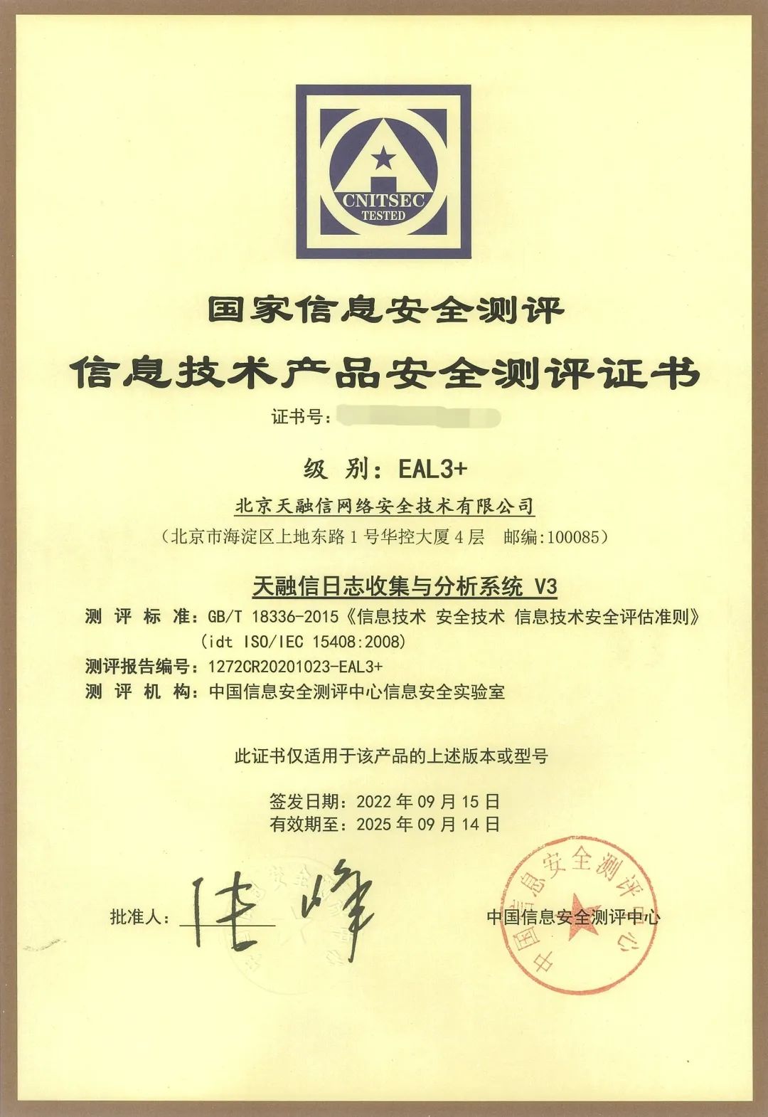 - ׯÏÐÓÎÏ· ÈÕÖ¾ÍøÂçÓëÆÊÎöϵͳ EAL3+¼¶²âÆÀÖ¤Êé
