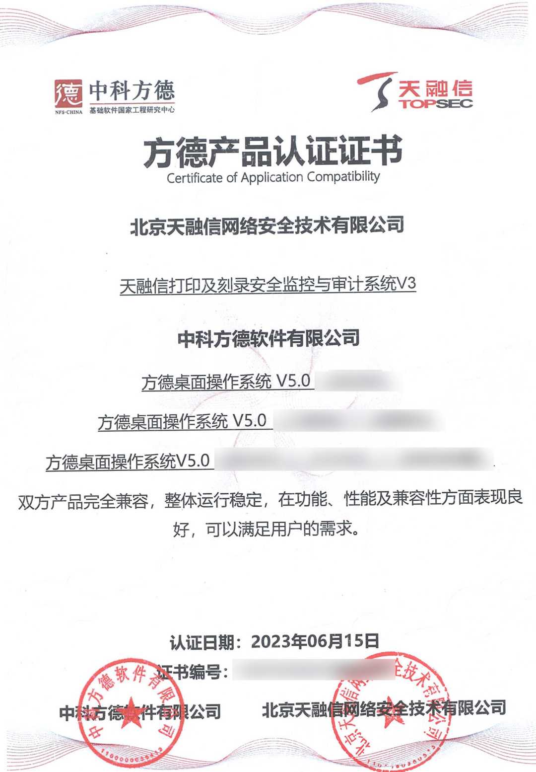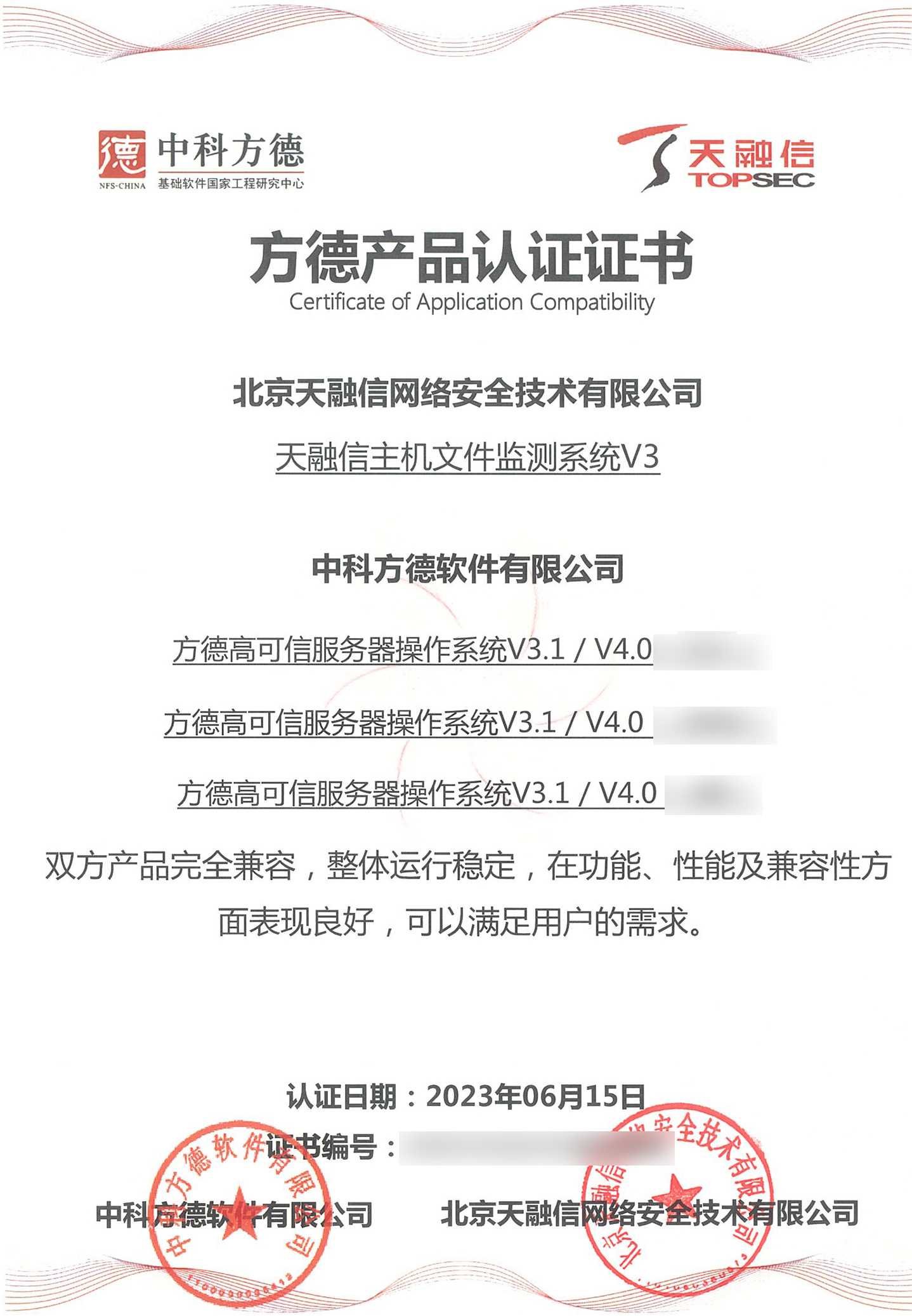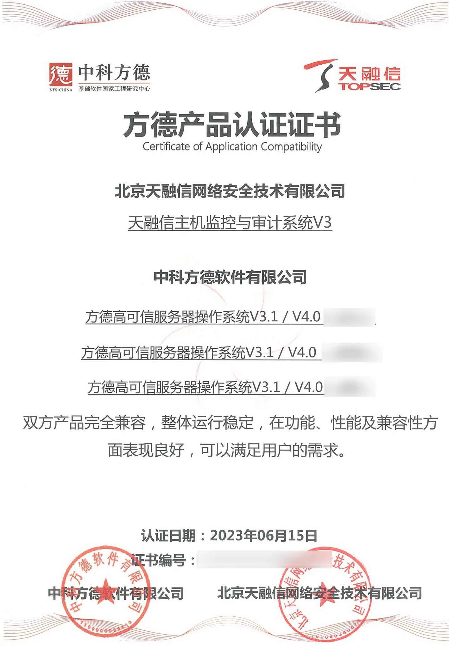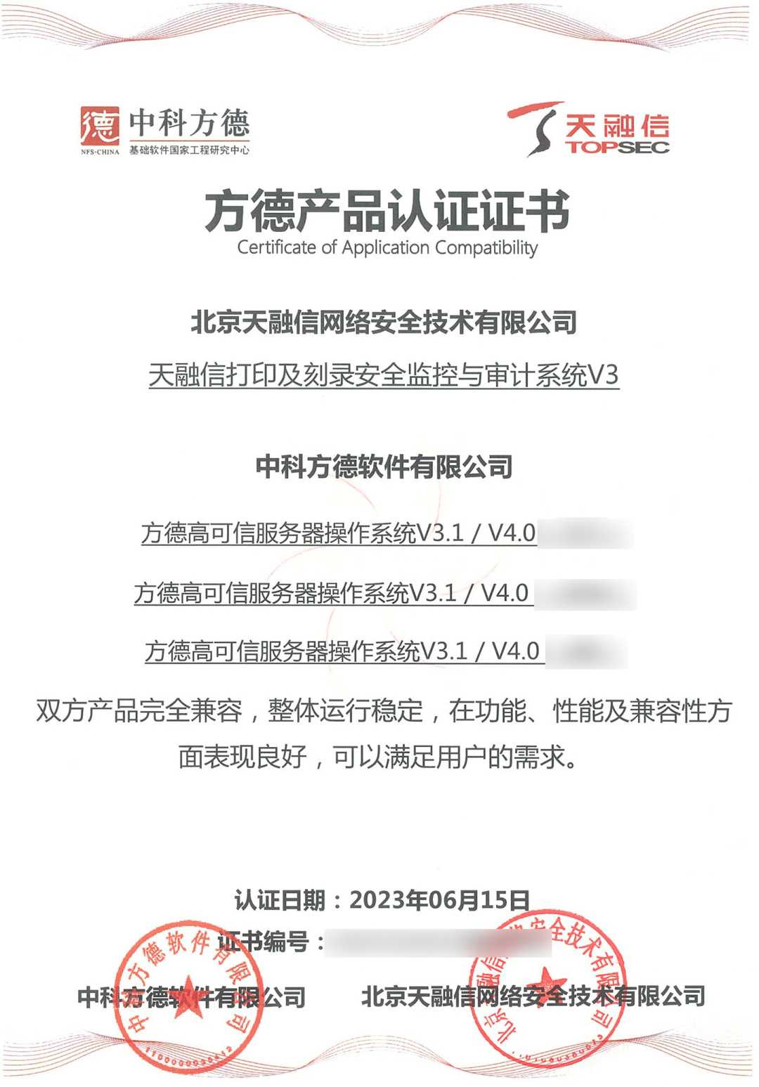 ¿ËÈÕ£¬£¬£¬£¬£¬×¯ÏÐÓÎÏ·À¥ÂØÏµÁÐÖÕ¶ËÍþв·ÀÓùϵͳ¡¢Ö÷»ú¼à¿ØÓëÉó¼ÆÏµÍ³¡¢ÖÕ¶ËÇå¾²µÇ¼ϵͳ¡¢Ö÷»úÎļþ¼à²âϵͳ¡¢´òÓ¡¼°¿Ì¼Çå¾²¼à¿ØÓëÉó¼ÆÏµÍ³¡¢Ð§ÀÍÆ÷Éó¼ÆÏµÍ³ÓëÖпƷ½µÂ×ÀÃæ²Ù×÷ϵͳV5¼°·½µÂ¸ß¿ÉÐÅЧÀÍÆ÷²Ù×÷ϵͳV3.1 / V4.0Íê³É¼æÈÝÈÏÖ¤¡£¡£¡£¡£Ë«·½²úÆ·ÍêÈ«¼æÈÝ£¬£¬£¬£¬£¬ÕûÌåÔËÐÐÎȹÌ£¬£¬£¬£¬£¬ÔÚ¹¦Ð§¡¢ÐÔÄܼ°¼æÈÝÐÔ·½ÃæÌåÏÖÓÅÒ죬£¬£¬£¬£¬Öª×ã¿Í»§µÄ½¹µãÐèÇ󣬣¬£¬£¬£¬»ñµÃ·½µÂ²úÆ·ÈÏÖ¤Ö¤Êé¡£¡£¡£¡£´Ëǰ£¬£¬£¬£¬£¬¸ÃϵÁÐÖն˲úÆ·ÒÑ»ñÈ¡ÍÔÊÐíȲÙ×÷ϵͳ²î±ðCPU¼Ü¹¹ÏµļæÈÝÈÏÖ¤Ö¤Êé¡£¡£¡£¡£